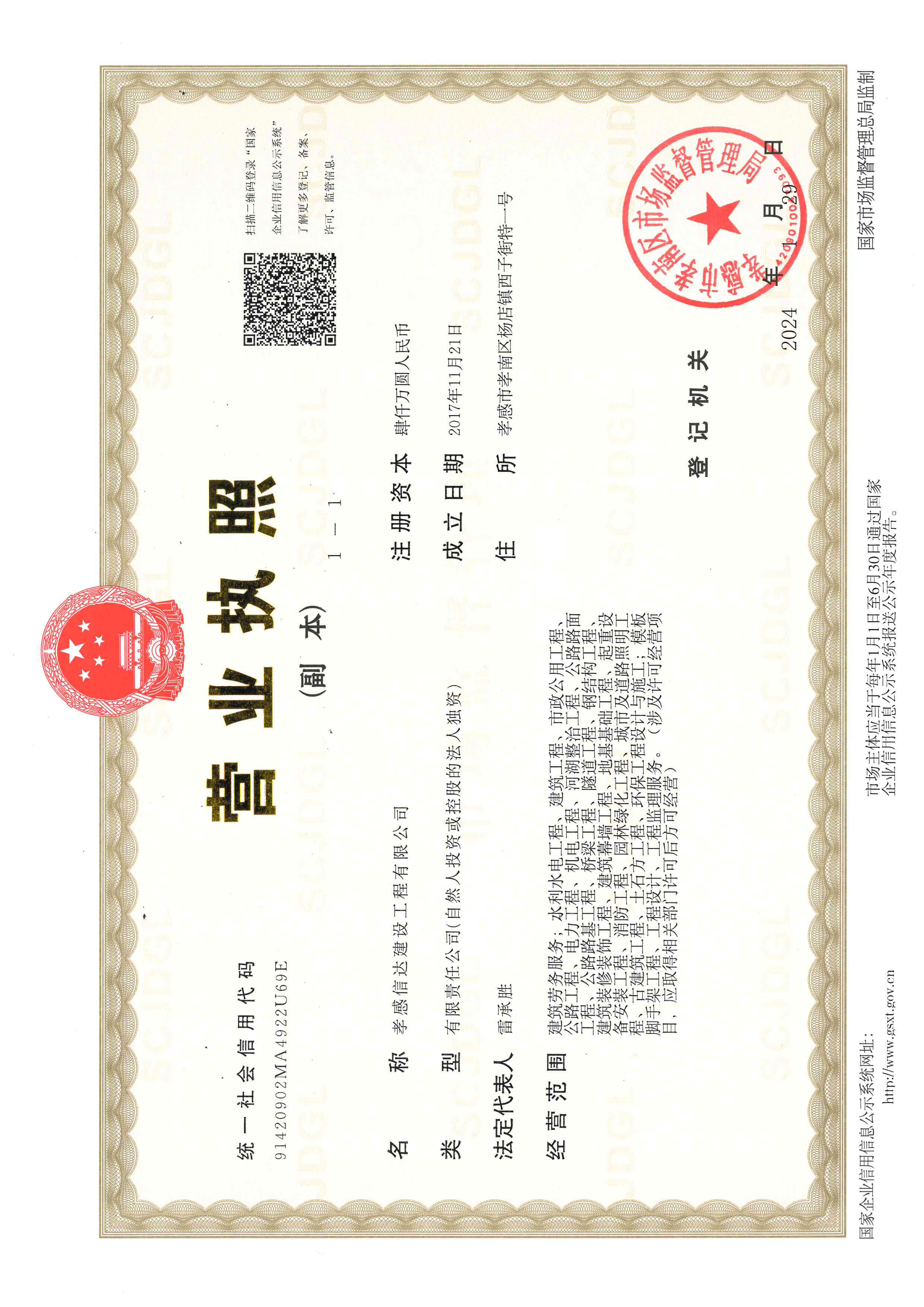 我公司擁有市政公用工程施工總承包貳級、環(huán)保工程專業(yè)承包貳級及水利水電工程施工總承包貳級資質,經營范圍:建筑勞務服務;水利水電工程、建筑工程、市政公用工程、公路工程、電力工程、機電工程、河湖整治工程、公路路面工程、公路路基工程、橋梁工程、隧道工程、鋼結構工程、建筑裝修裝飾工程、建筑幕墻工程、地基基礎工程、起重設備安裝工程、消防工程、園林綠化工程、城市及道路照明工程、古建筑工程、土石方工程、環(huán)保工程設計與施工;模板腳手架工程、工程設計、工程監(jiān)理服務等。